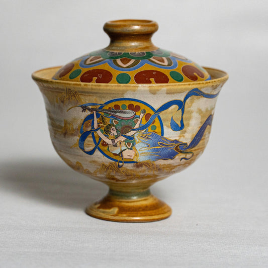 Handmade Ceramic Dunhuang Sancai Gaiwan Tea Cup with Ancient Murals Design