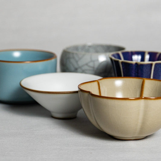 Ceramic Antique Chinese Gongfu Tea Cup Set Replicas of The Five Great Kilns