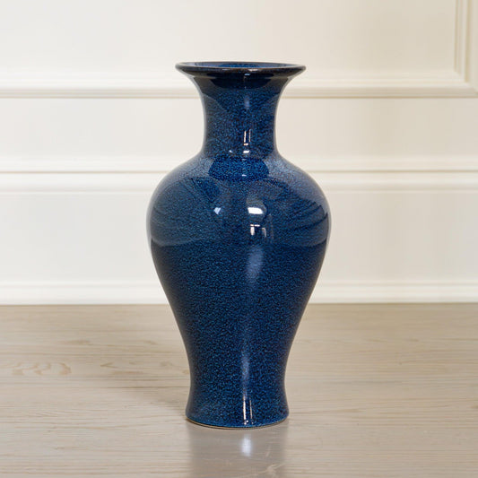 Dark Blue Ceramic Vase, Fish Tail Shape with Star-like Speckles, Home Decor, Unique Color Change Glaze, Artisan Crafted Porcelain