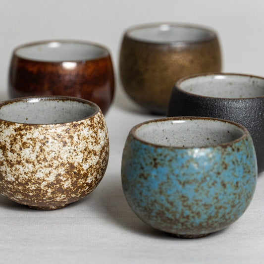 Set of 5 Zen Wabi-Sabi Coarse Pottery Tea Cup Set