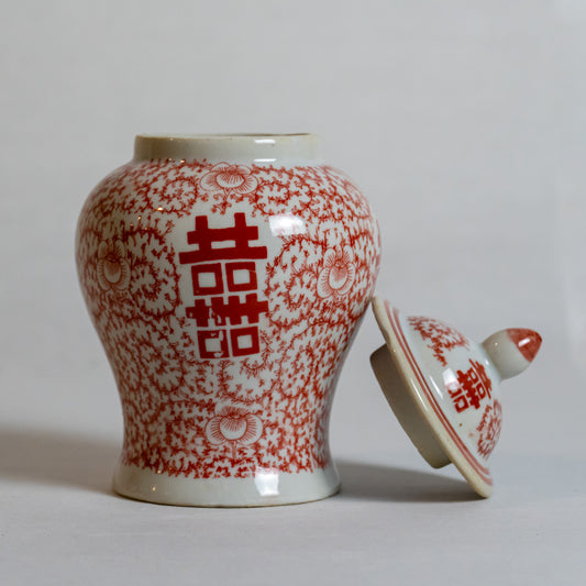 Blue and White / Red and White Porcelain Double Happiness Ginger Jar, Mini Classic Ceramic Jar with Lid