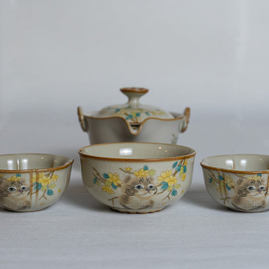 Portable Hand-Painted Cat Themed Porcelain Travel Tea Set