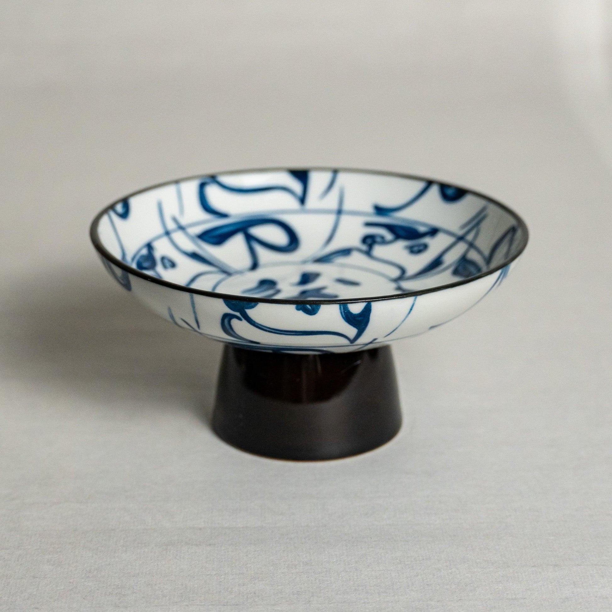Vintage-Style: Hand-Painted Blue and White Porcelain High Footed Bowl